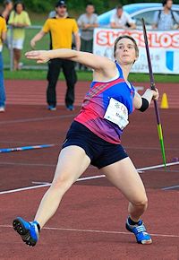 | 26.6.2013 - 22:30 Gelungener Belastungs-Test von Nathalie: 48.67m am Abendmeeting Thun